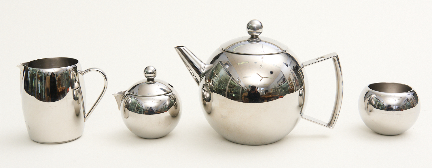 AN AVANTI STAINLESS STEEL TEA SET, LEONARD JOEL LOCAL DELIVERY SIZE: SMALL