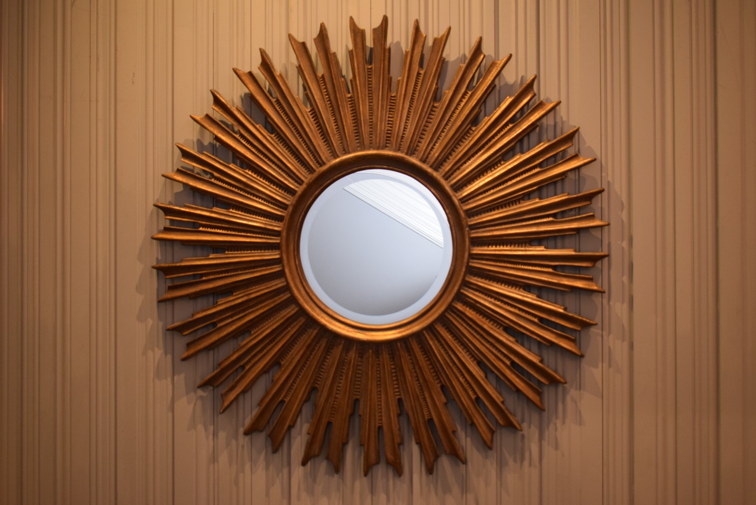 A GILT EFFECT STARBURST MIRROR WITH BEVELLED GLASS (103 CM DIAMETER) (LEONARD JOEL DELIVERY SIZE: LARGE)