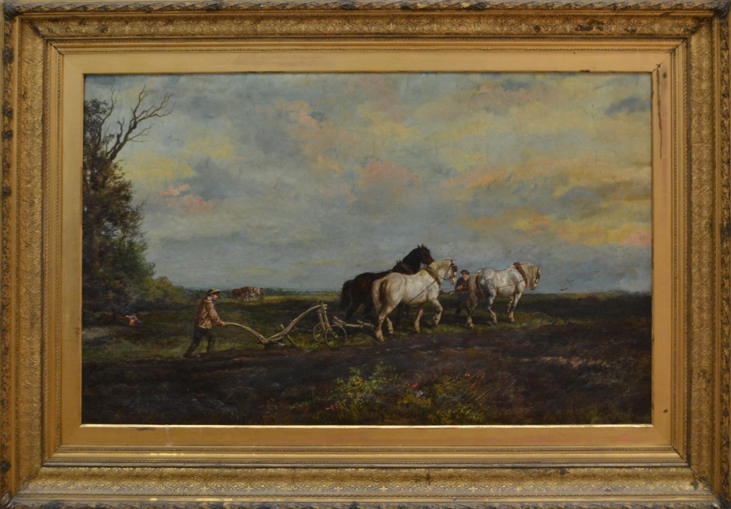 ARTIST UNKNOWN, OIL ON CANVAS, PLOWING SCENE, 75 X 126CM, FRAMED SIZE: 112 X 163CM, LEONARD JOEL DELIVERY SIZE: LARGE