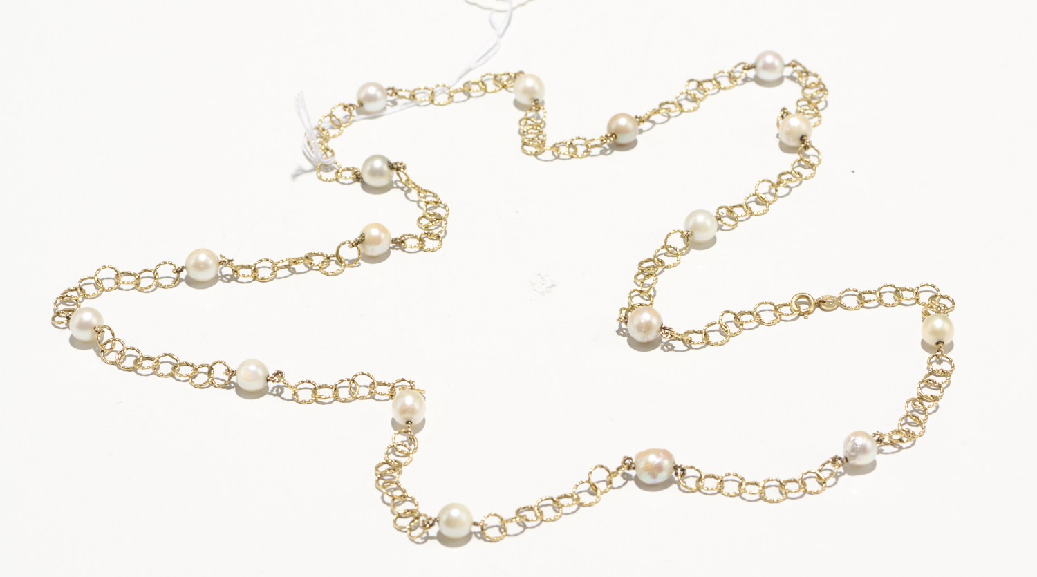 AN ITALIAN PEARL AND AND FANCY LINK NECKLACE, LENGTH 93.5CM