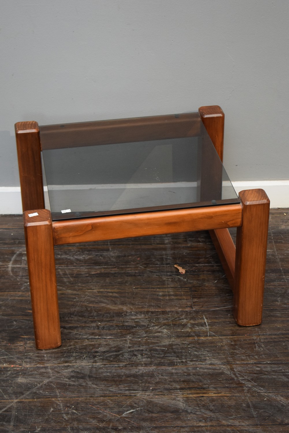 A MID-CENTURY GLASS TOPPED COFFEE TABLE (H39 X W60 X D60 CM) (LEONARD JOEL DELIVERY SIZE: MEDIUM)