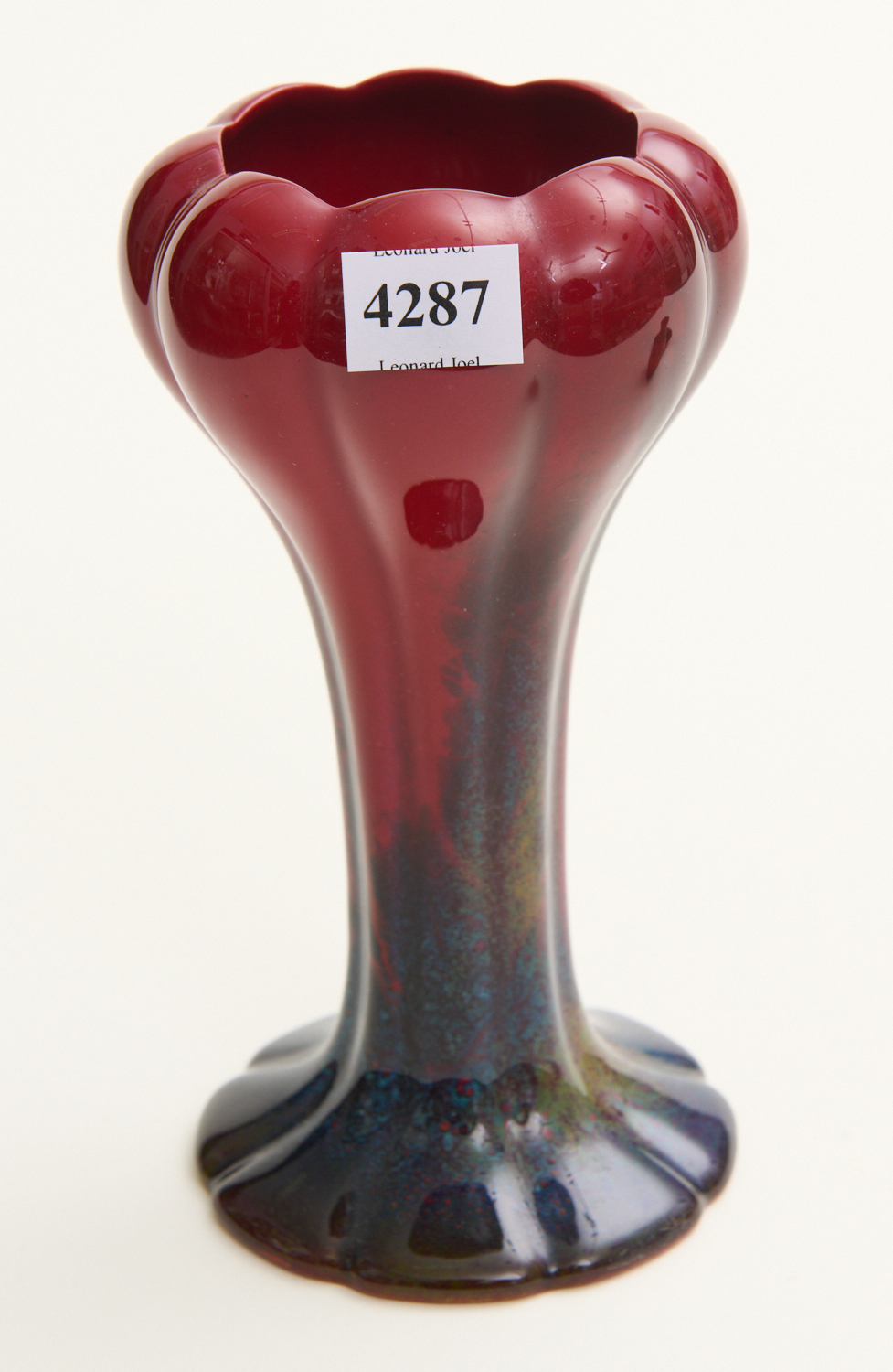 A ROYAL DOULTON FLAMBE TULIP VASE, SUNG, SIGNED NOKE, LEONARD JOEL LOCAL DELIVERY SIZE: SMALL