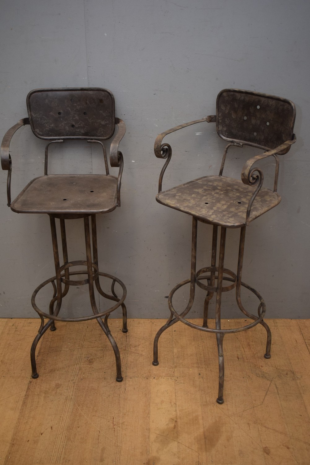 A PAIR OF METAL HIGH BAR STOOLS (A/F) ( 120X 48W X 42D CM) (LEONARD JOEL DELIVERY SIZE: LARGE)