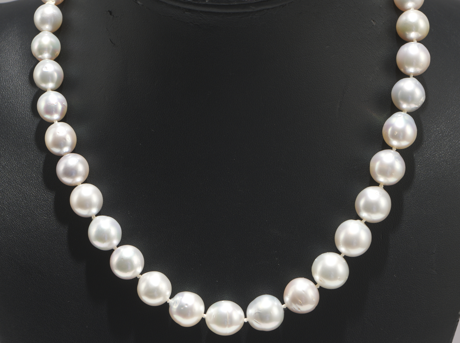 A STRAND OF SOUTH SEA PEARLS TO A SILVER CLASP