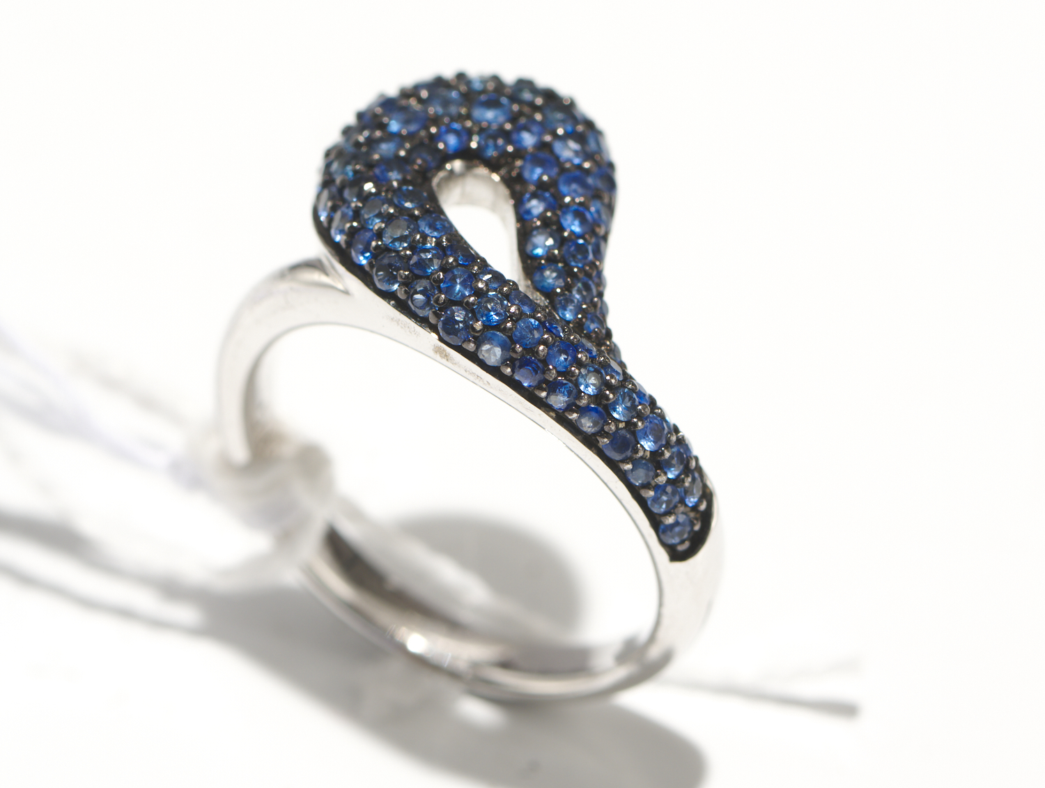 A SAPPHIRE DRESS RING IN SILVER BY AUTORE, SIZE O