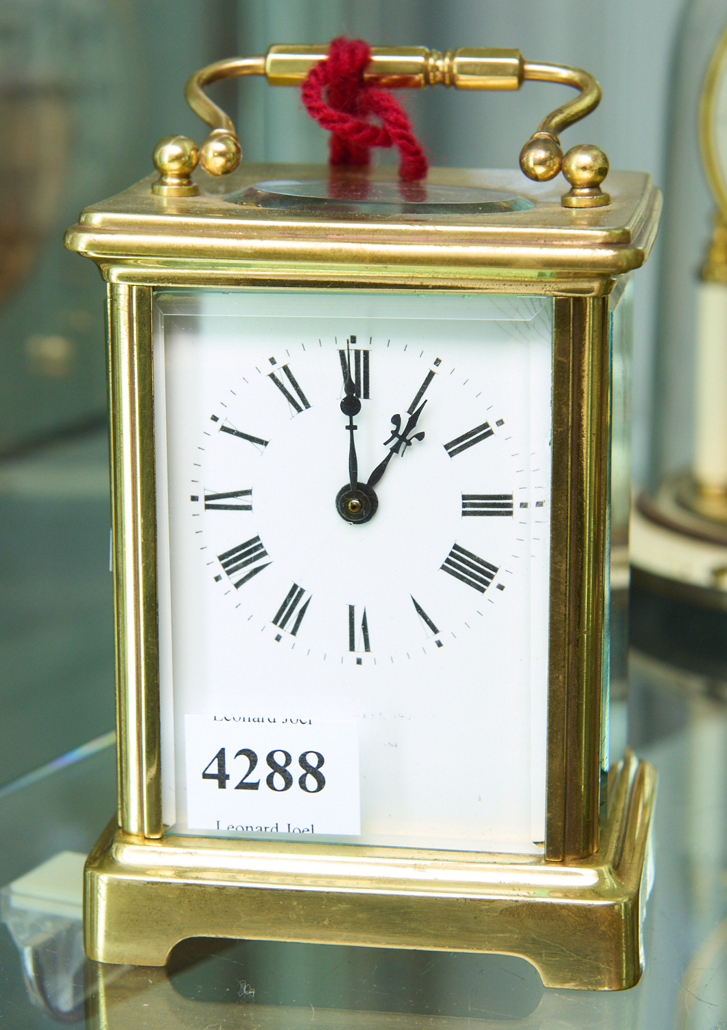A SMALL FRENCH BRASS CARRIAGE CLOCK H.10CM, LEONARD JOEL LOCAL DELIVERY SIZE: SMALL