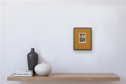Work appears to be in very good condition. Upon close inspection areas of the black pigment have not transferred to the paper fully revealing the white underground of the paper. The full sheet is visible although it is unknown if it is adhered to a backing. Framed size 25.5 x 20.5cm.