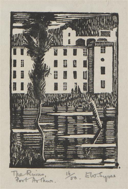 signed, titled and editioned in pencil below image: The Ruins, Port Arthur 16/50. EW.Syme