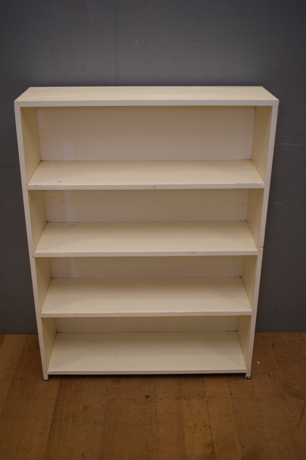 A WHITE PAINTED BOOKSHELF (A/F) (124H x 93W x 29D CM) (LEONARD JOEL DELIVERY SIZE: LARGE)