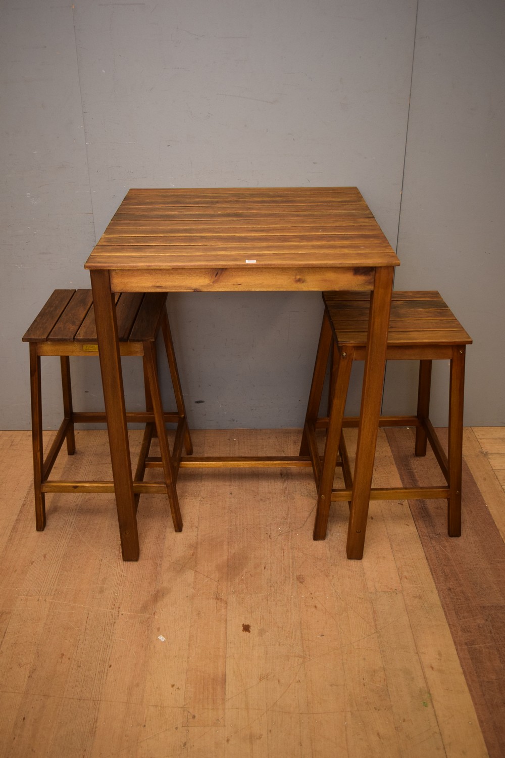 A THREE PIECE OUTDOOR SETTING (TABLE 100H x 80W x 80D CM) (LEONARD JOEL DELIVERY SIZE: LARGE)