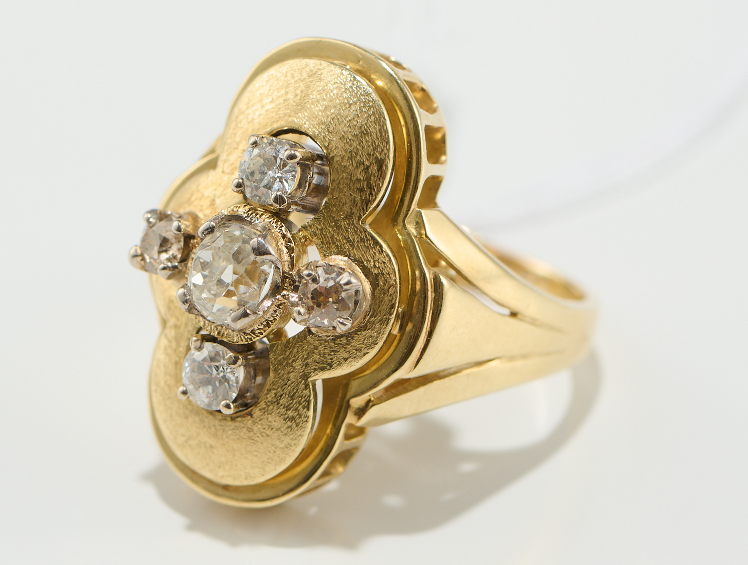AN OLD CUT DIAMOND RING IN 14CT GOLD, RING SIZE U, TOTAL WEIGHT 11.6GMS