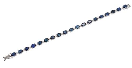 AN 18CT WHITE GOLD SAPPHIRE AND DIAMOND BRACELET COMPOSE OF NINETEEN OVAL-CUT SAPPHIRES TOTALLING 22.30CTS, SPACED BY ROUND BRILLIANT-CUT DIAMONDS TOTALLING 0.80CTS, LENGTH APPROXIMATELY 190MM.