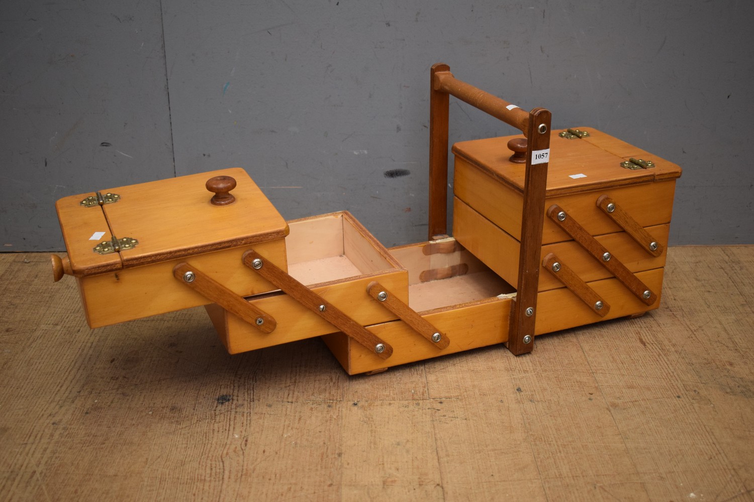 A MID-CENTURY EXPANDABLE ACCORDION SEWING BOX (30H x 48W x 27D CM) (LEONARD JOEL DELIVERY SIZE: MEDIUM)