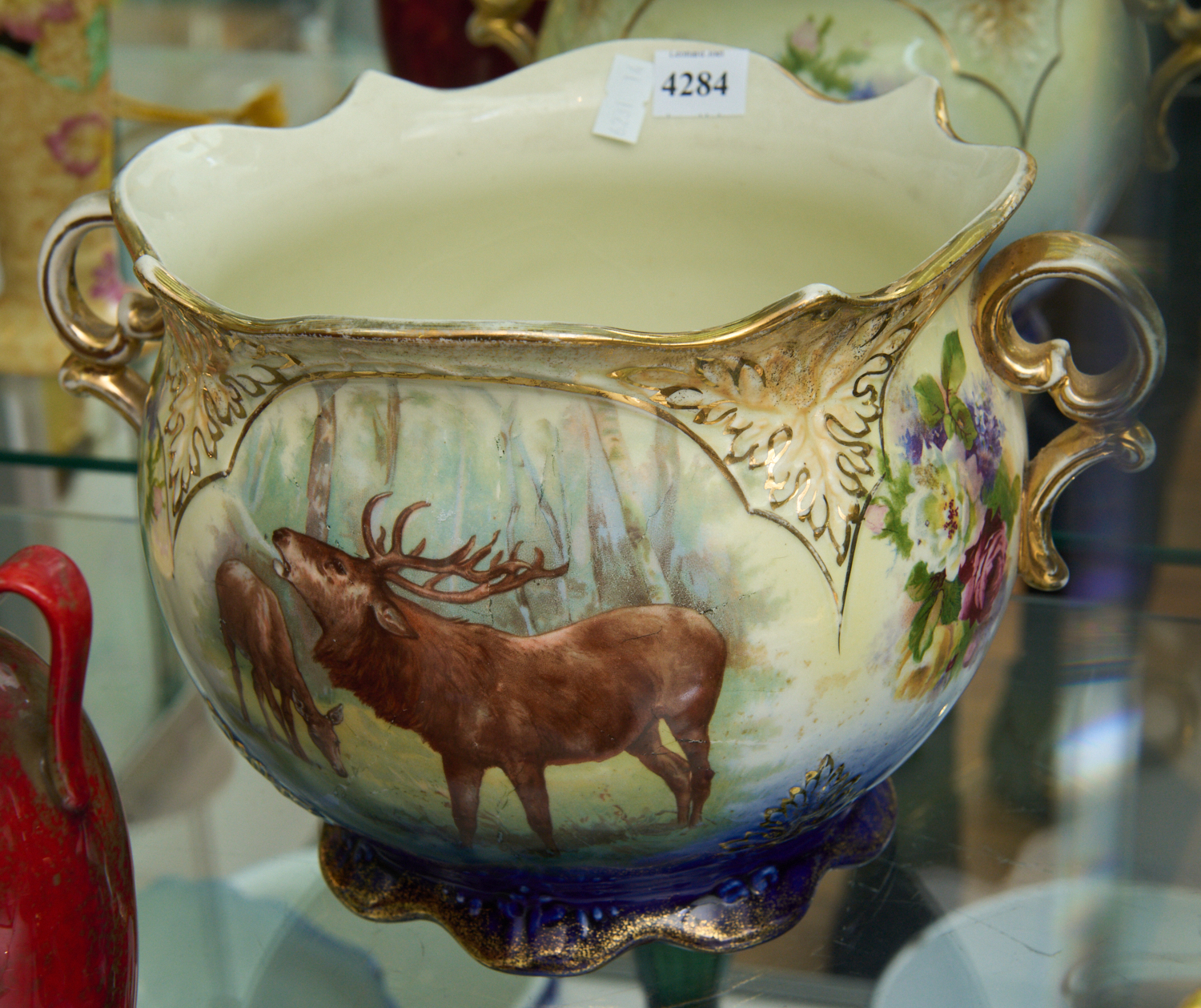 A PORCELAIN JARDINIERE WITH DEER DECORATION (21 CM D), LEONARD JOEL LOCAL DELIVERY SIZE: SMALL