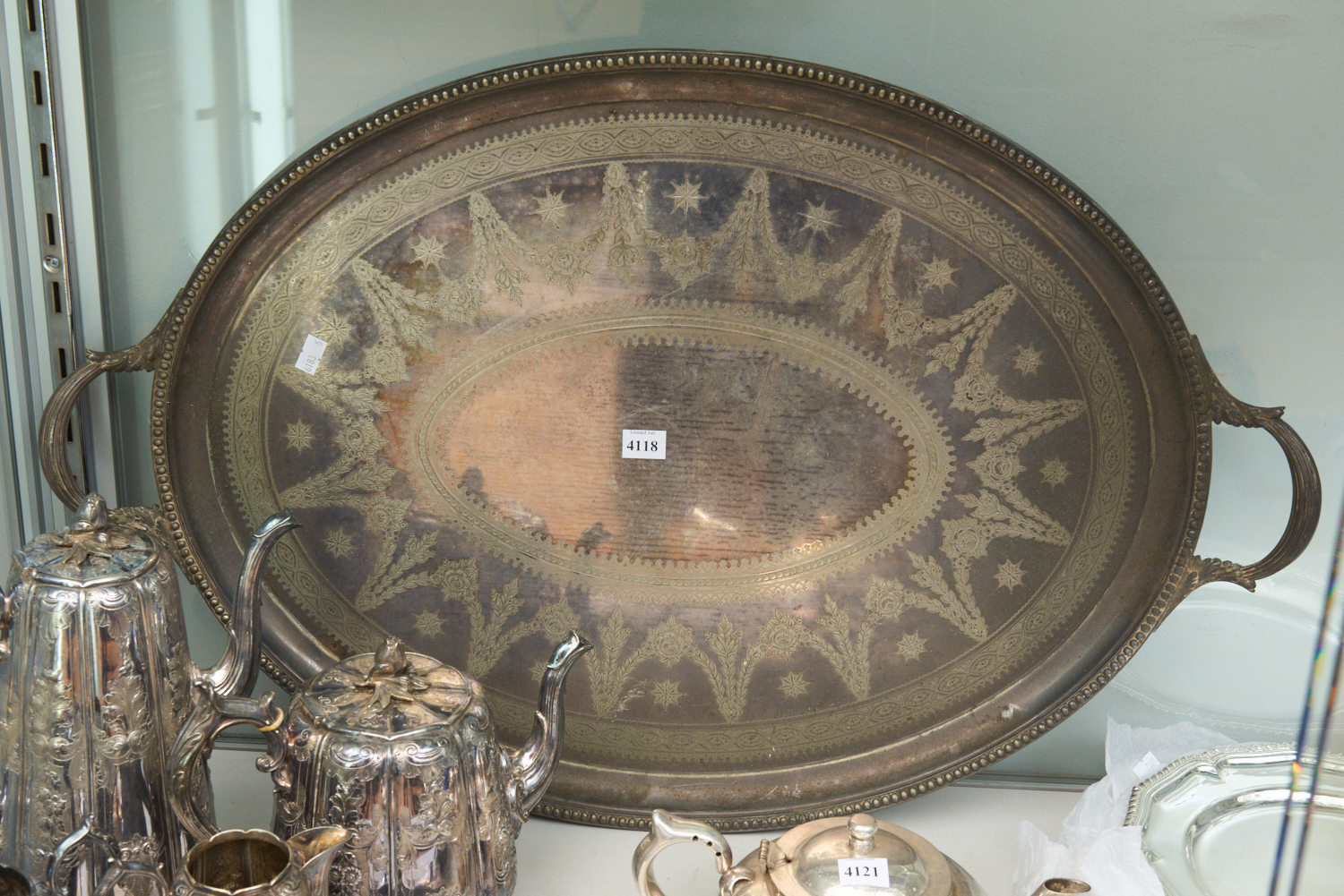 A LARGE ELKINGTON & CO SILVER PLATE TRAY L.72CM, LEONARD JOEL LOCAL DELIVERY SIZE: SMALL