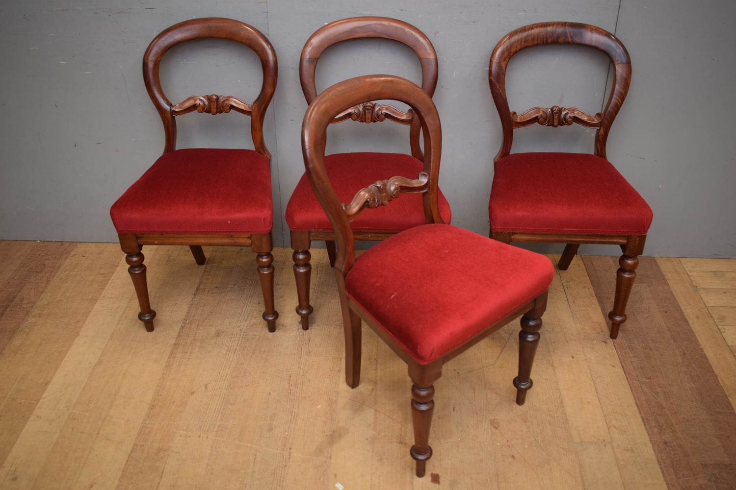 A SET OF FOUR VICTORIAN BALLOON BACK DINING CHAIRS (H87 X W48 X D56 CM) (LEONARD JOEL DELIVERY SIZE: LARGE)