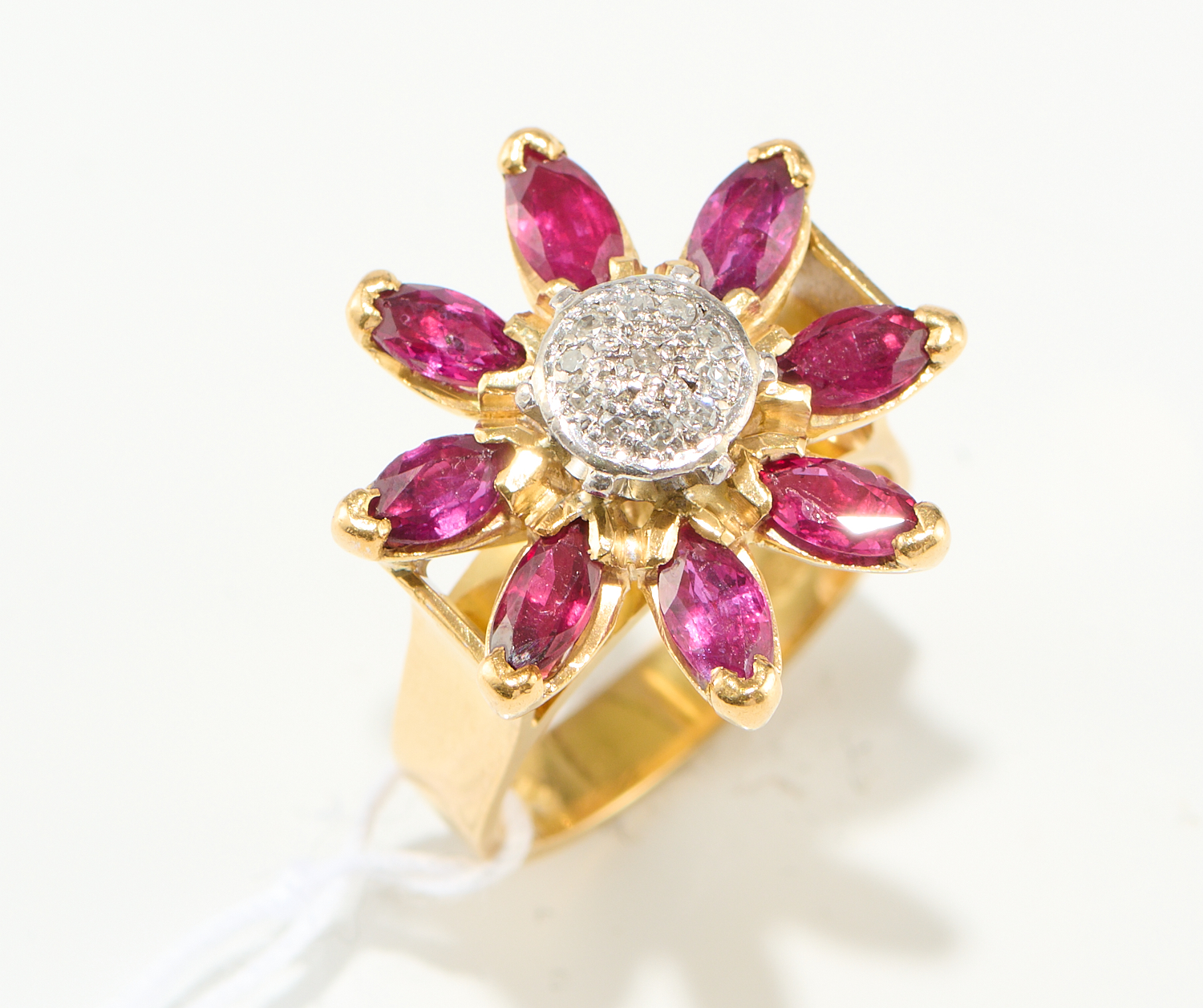 A RUBY AND DIAMOND CLUSTER RING WITH VALUATION, THE RUBIES APPROXIMATELY 1.74CT, THE DIAMONDS APPROXIMATELY 0.13ct, RING SIZE K