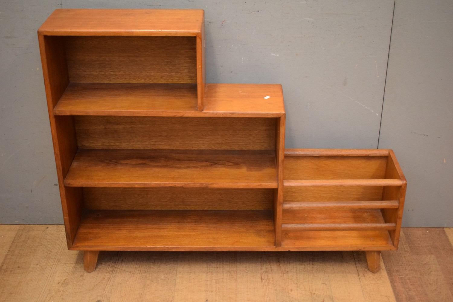 A TEAK BOOKSHELF WITH MAGAZINE RACK (H89 X W114 X D23 CM) (LEONARD JOEL DELIVERY SIZE: LARGE)