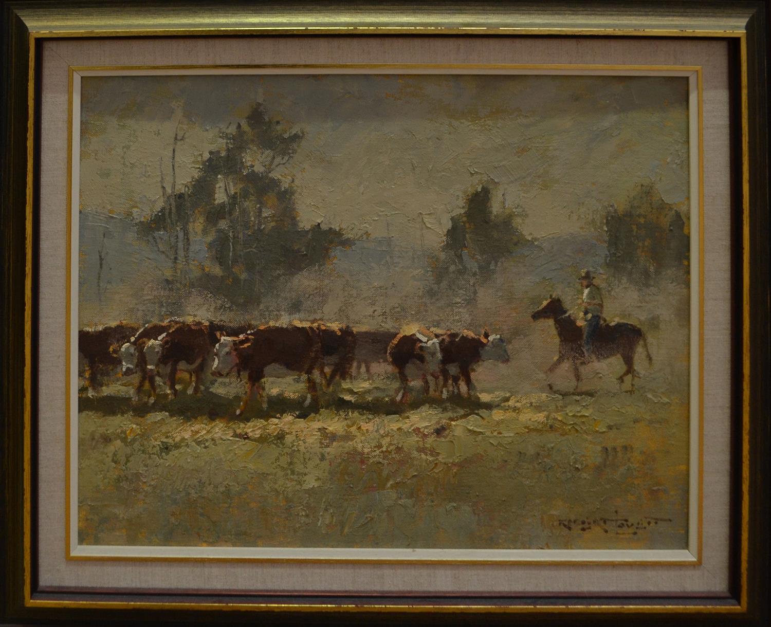 ROBERT LOVETT, COWS, OIL ON BOARD, 39 X 50CM, LEONARD JOEL DELIVERY SIZE: MEDIUM
