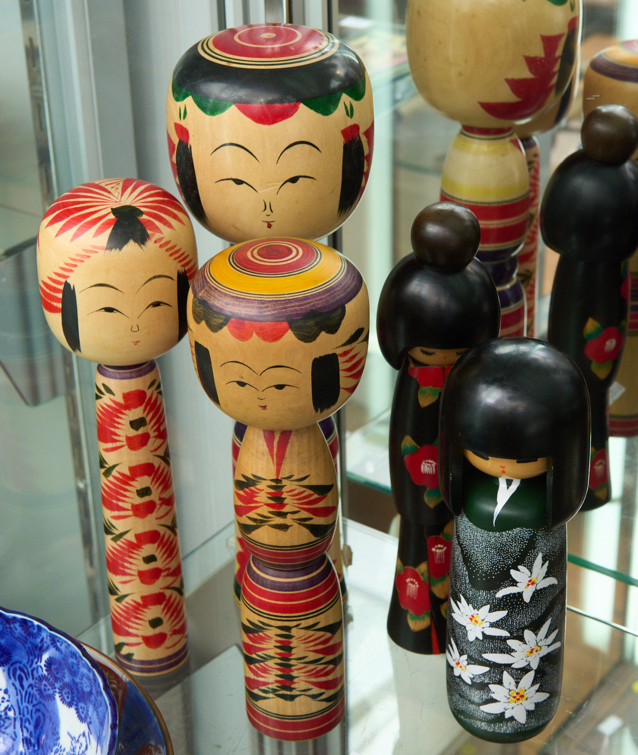 COLLECTION OF FIVE VINTAGE HAND PAINTED WOODEN JAPANESE KOKESHI DOLLS, LEONARD JOEL LOCAL DELIVERY SIZE: SMALL