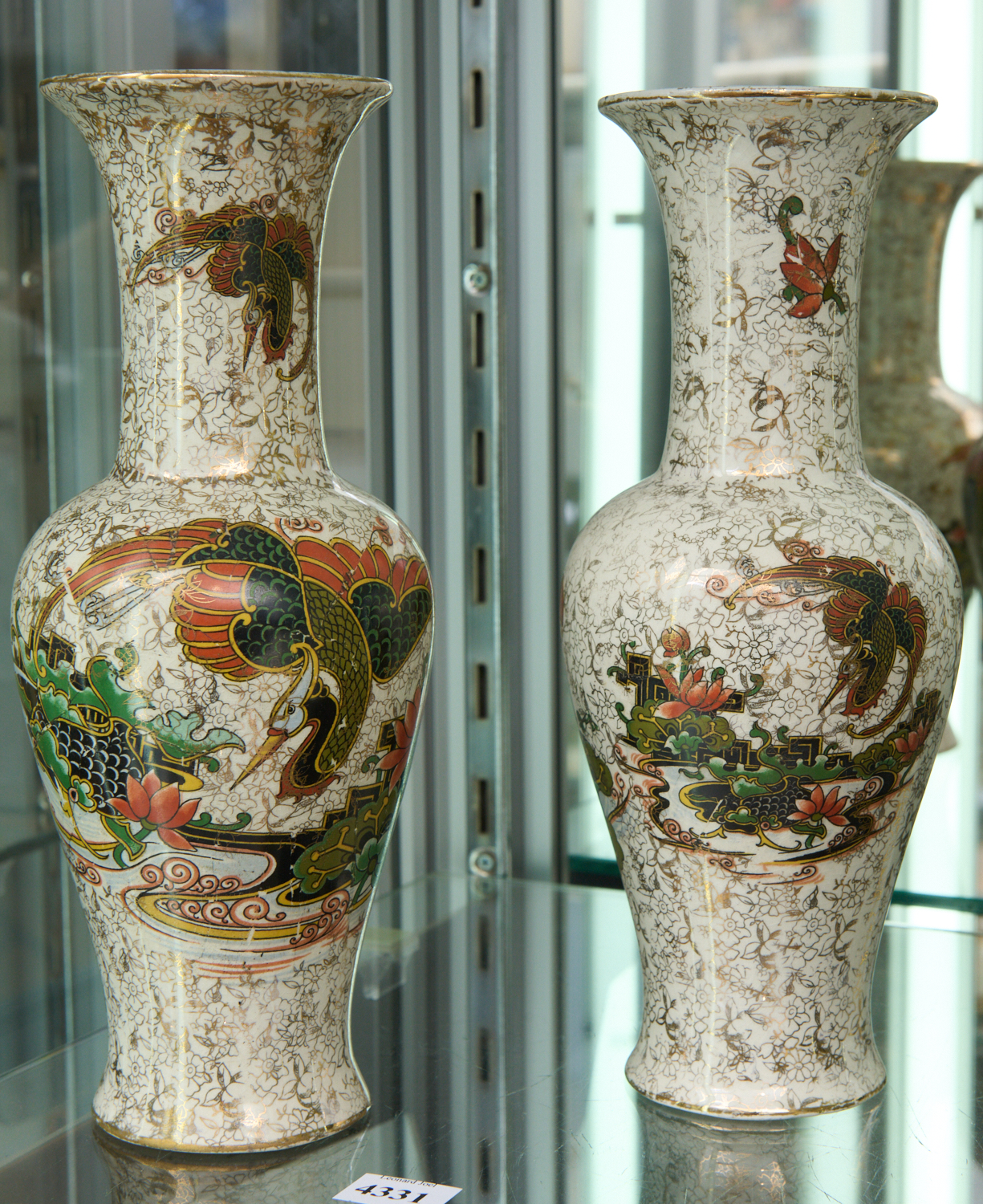 ENGLISH PORCELAIN PHOENIX AND FLOWER DECORATED BALUSTER VASES (A/F), LEONARD JOEL LOCAL DELIVERY SIZE: SMALL