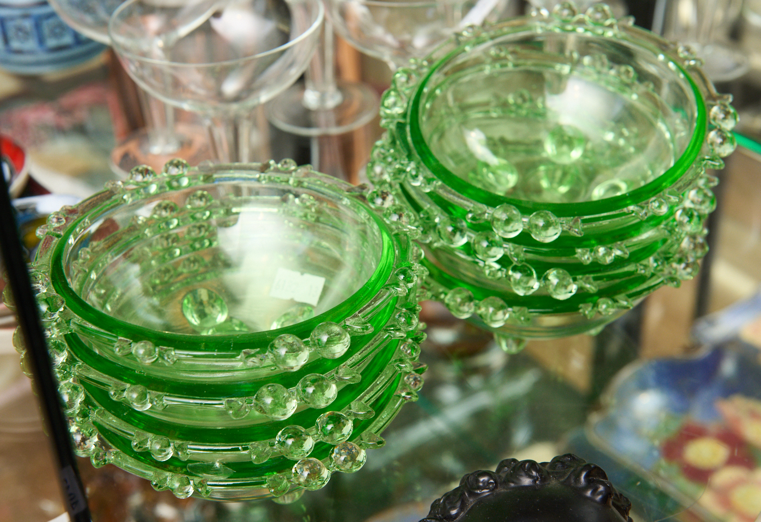 SET OF EIGHT DEPRESSION GLASS BOWLS, LEONARD JOEL LOCAL DELIVERY SIZE: SMALL