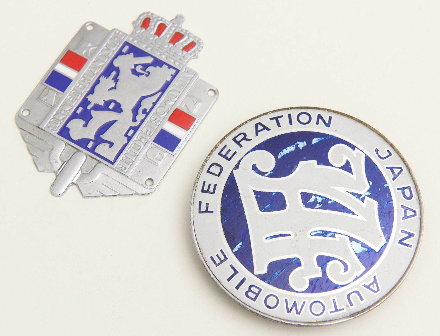 TWO VINTAGE AUTOMOBILE CAR BADGES ONE JAPAN AND THE OTHER CZECHOSLOVAKIA, LEONARD JOEL LOCAL DELIVERY SIZE: SMALL