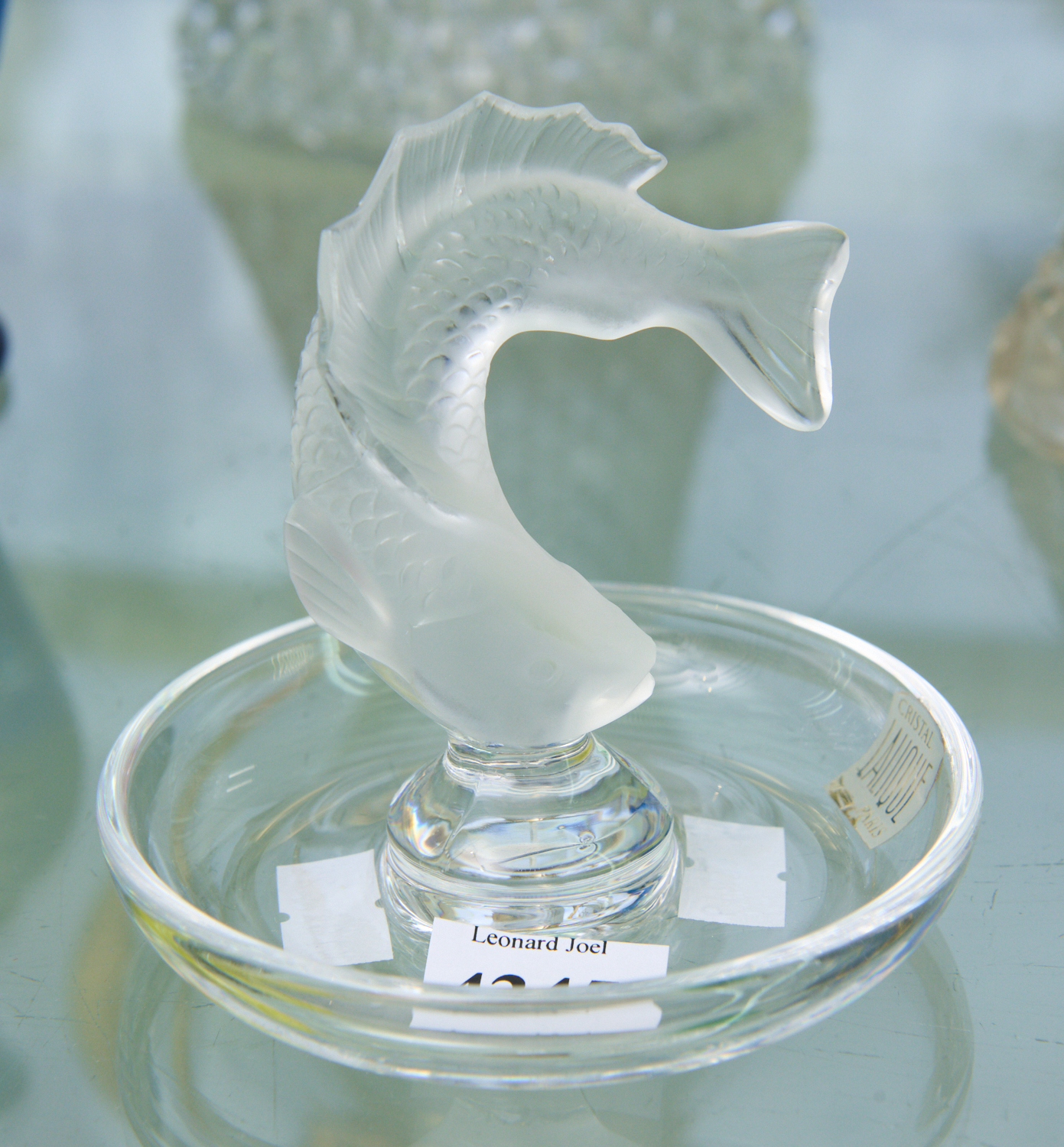 LALIQUE FRANCE FISH FROSTED GLASS DISH, LEONARD JOEL LOCAL DELIVERY SIZE: SMALL