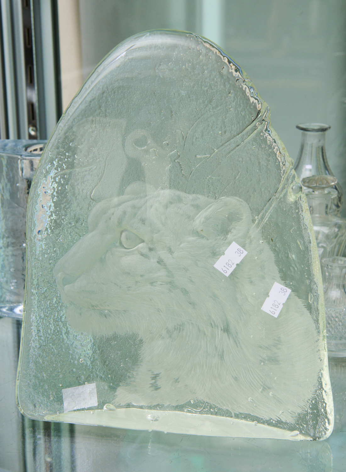 A VINTAGE AUSTRALIAN MADE ART GLASS ETCHED LEOPARD BLOCK (28 CM H), LEONARD JOEL LOCAL DELIVERY SIZE: SMALL