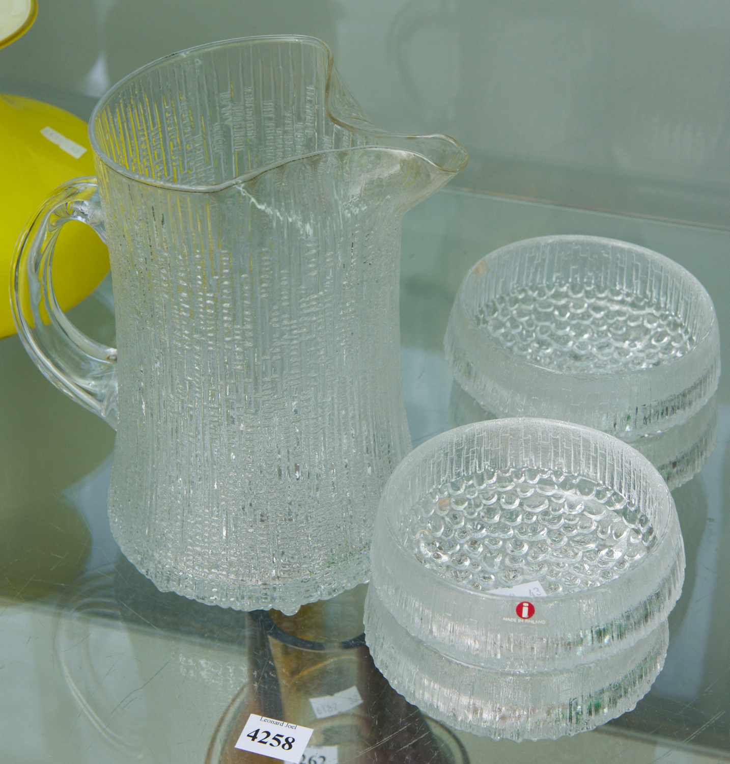 A FINNISH IITTALA JUG AND MATCHING BOWLS, LEONARD JOEL LOCAL DELIVERY SIZE: SMALL