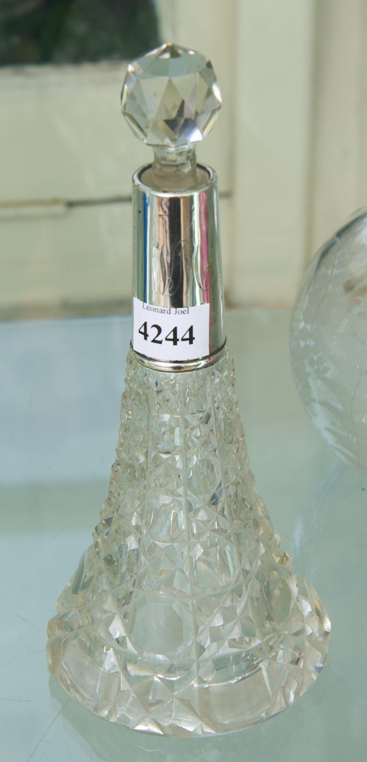 STERLING SILVER MOUNTED CUT CRYSTAL PERFUME BOTTLE H.21.5CM, LEONARD JOEL LOCAL DELIVERY SIZE: SMALL