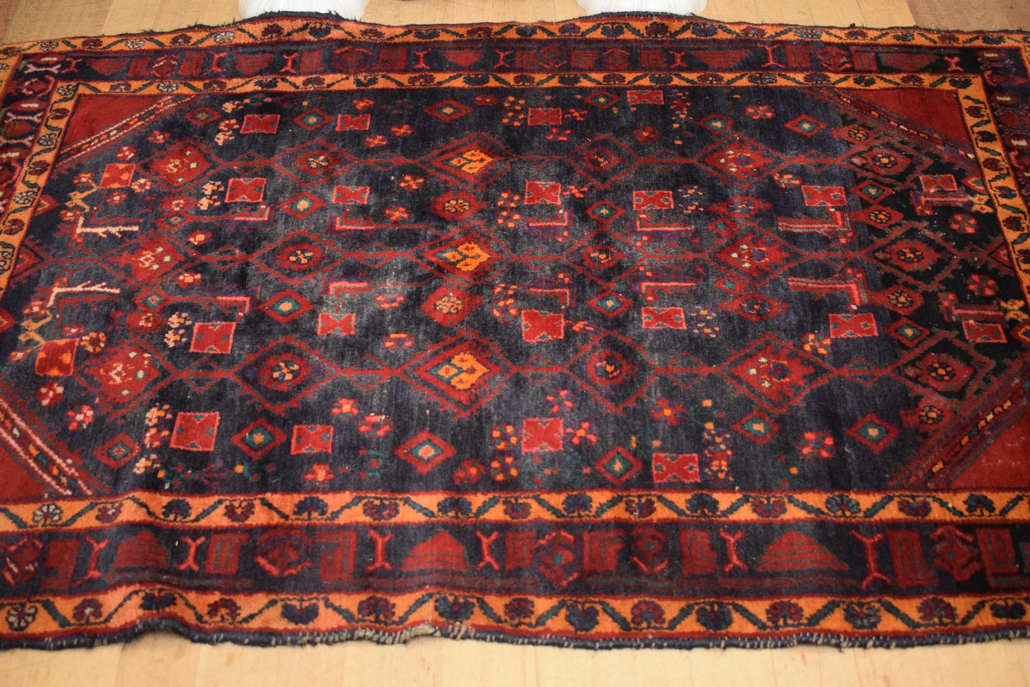 A 100% WOOLLEN PERSIAN RUG (A/F) (211 X 135 CM) (LEONARD JOEL DELIVERY SIZE: MEDIUM)