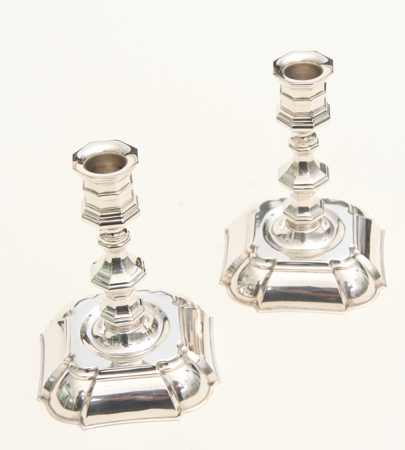 A PAIR OF SILVER DANISH CANDLESTICKS H.14CM, 208G, LEONARD JOEL LOCAL DELIVERY SIZE: SMALL