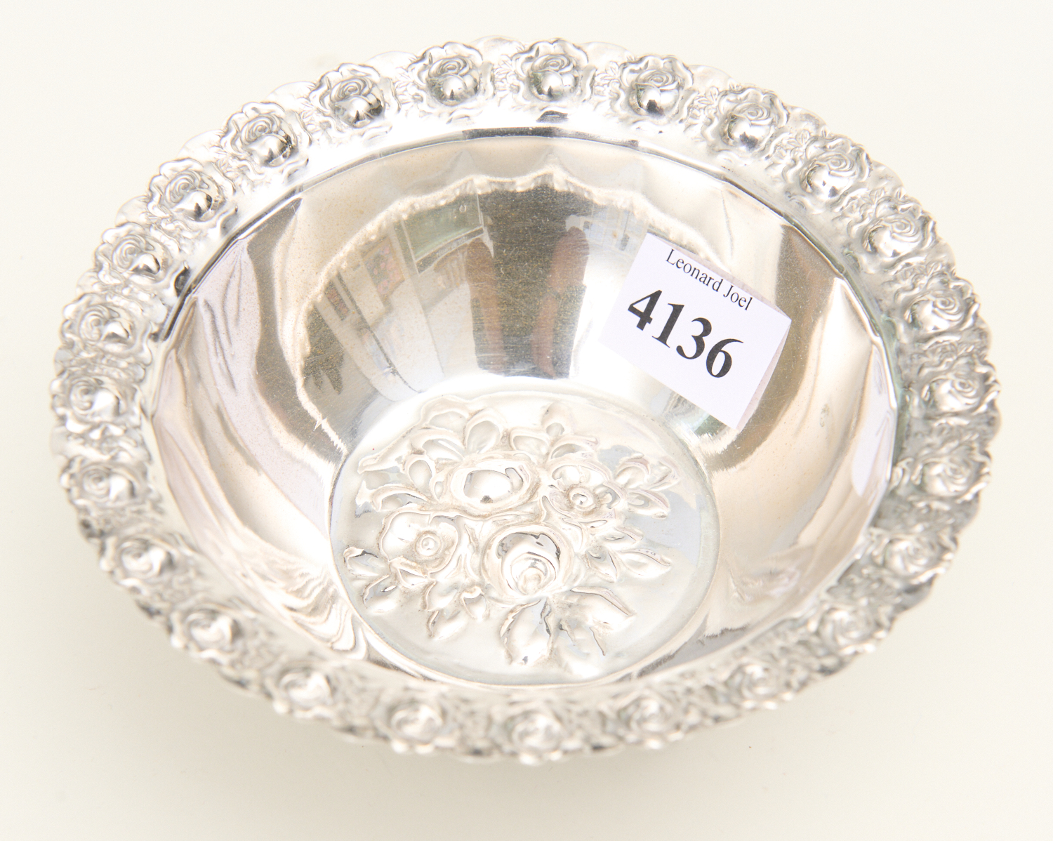 A 800 SILVER FLORAL SUGAR BOWL DIA.12CM, 54G, LEONARD JOEL LOCAL DELIVERY SIZE: SMALL