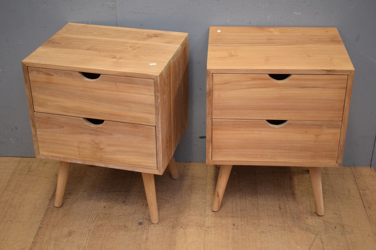 A PAIR OF MID-CENTURY STYLE TEAK BEDSIDE TABLES (A/F) (H65 X W51 X D40 CM) (LEONARD JOEL DELIVERY SIZE: LARGE)