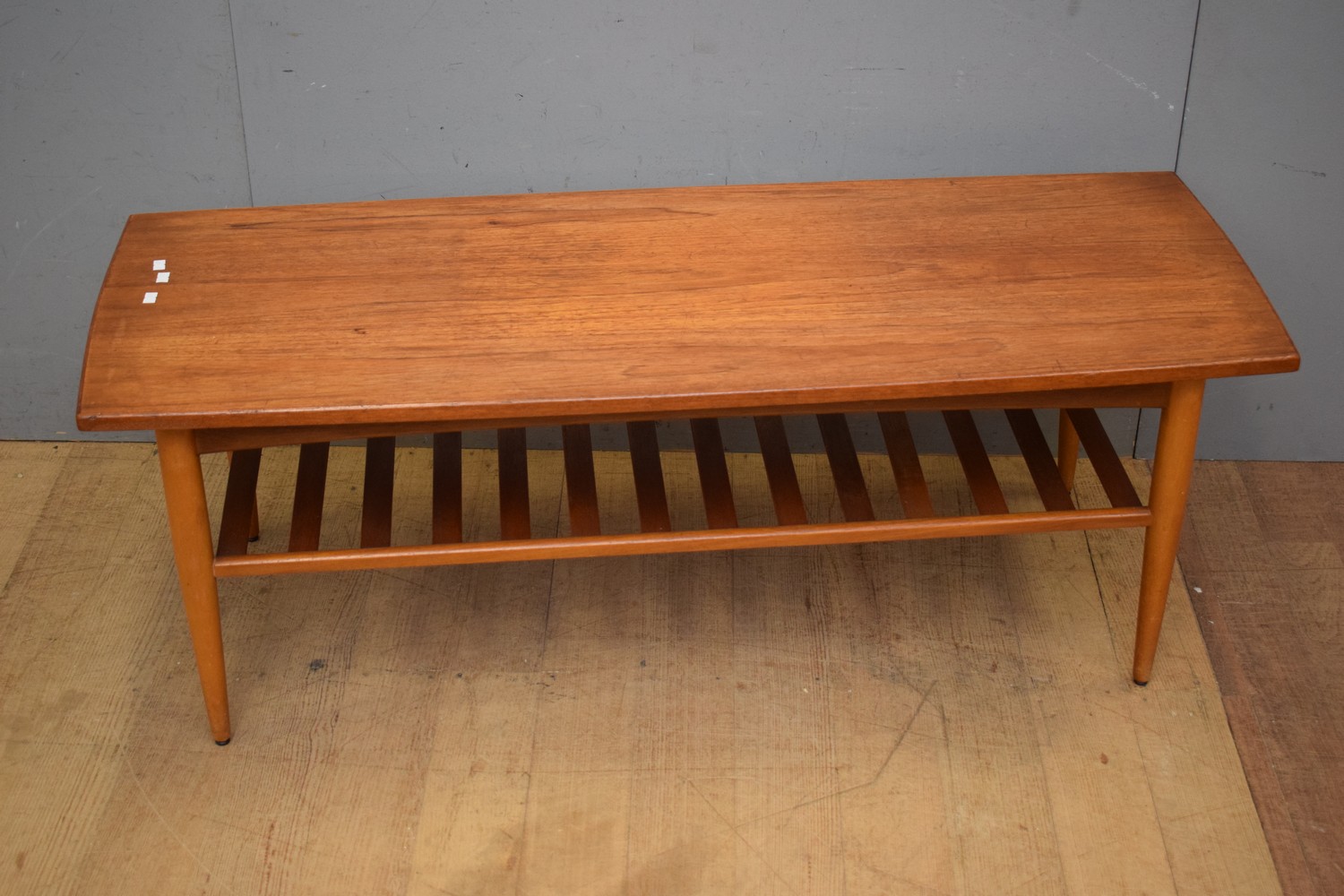 A MID-CENTURY TEAK TWO TIER COFFEE TABLE ( 43H X 121W X 46D CM) (LEONARD JOEL DELIVERY SIZE: LARGE)