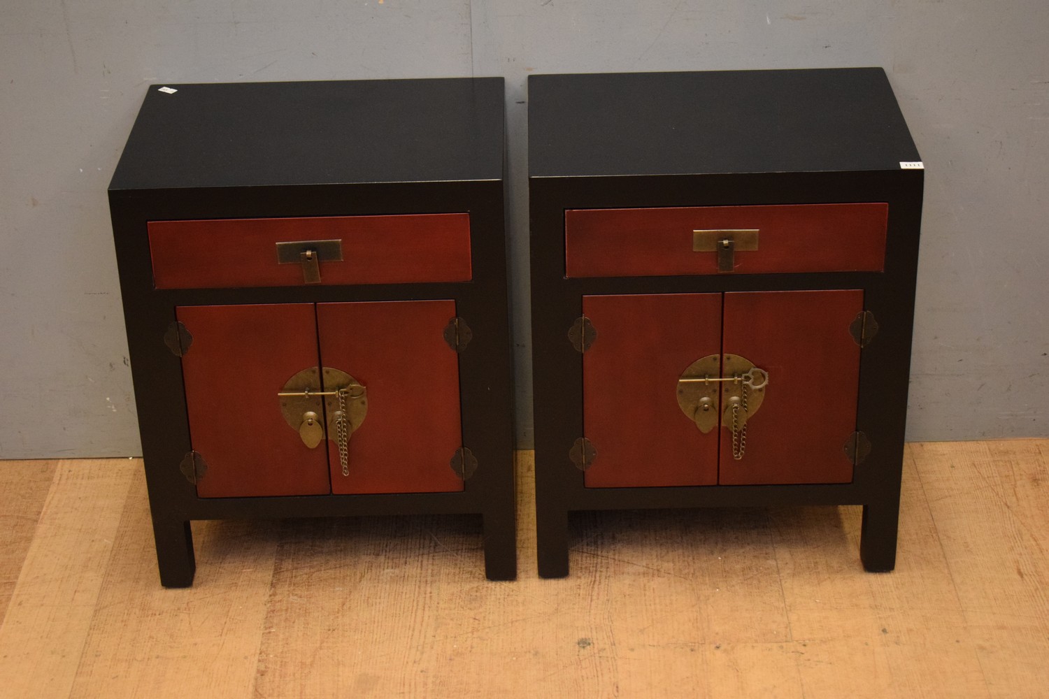 A PAIR OF CHINESE BEDSIDE CABINETS (56H x 45W x 32D CM) (LEONARD JOEL DELIVERY SIZE: LARGE)