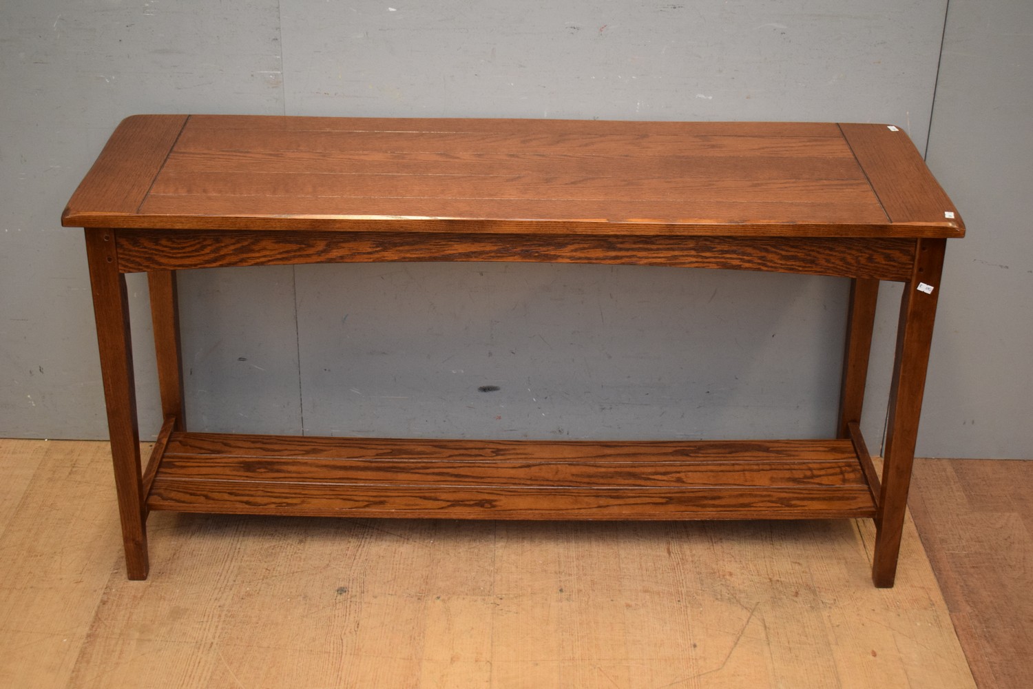 AN ARTS AND CRAFTS STYLE AMERICAN OAK HALL CONSOLE (A/F) (67H x 131W x 43D CM) (LEONARD JOEL DELIVERY SIZE: LARGE)