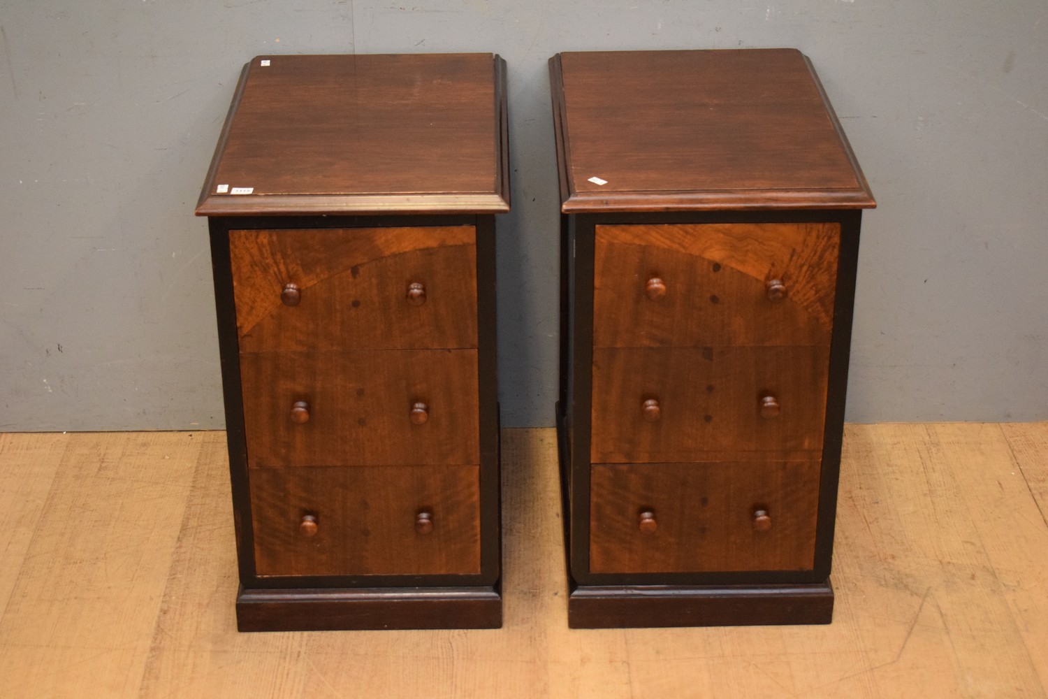 A PAIR OF ART DECO THREE DRAWER BEDSIDE CABINETS (A/F) (64H x 39W x 53D CM) (LEONARD JOEL DELIVERY SIZE: LARGE)