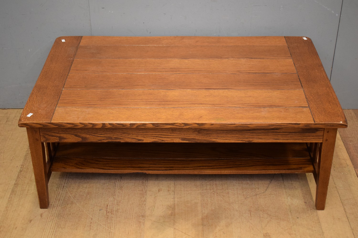 AN ARTS AND CRAFTS STYLE AMERICAN OAK COFFEE TABLE ( 40H X 113W X 71D CM) (LEONARD JOEL DELIVERY SIZE: LARGE)