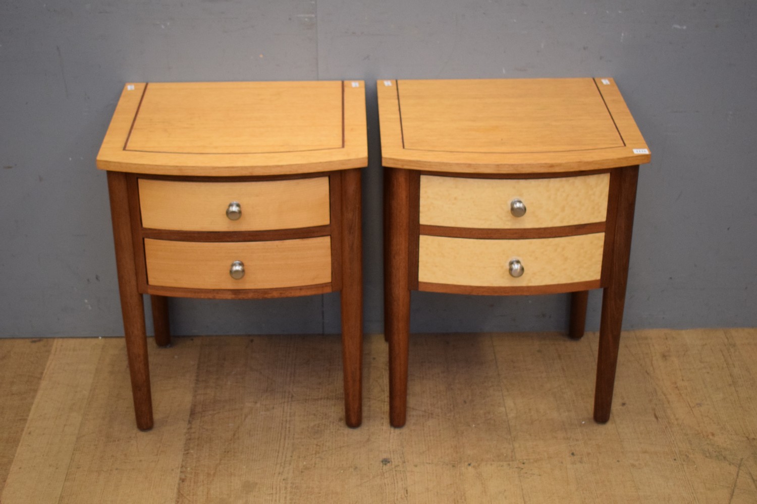 A PAIR OF ART DECO STYLE BOW FRONTED BEDSIDES (60H x 47W x 40D CM) (LEONARD JOEL DELIVERY SIZE: MEDIUM)