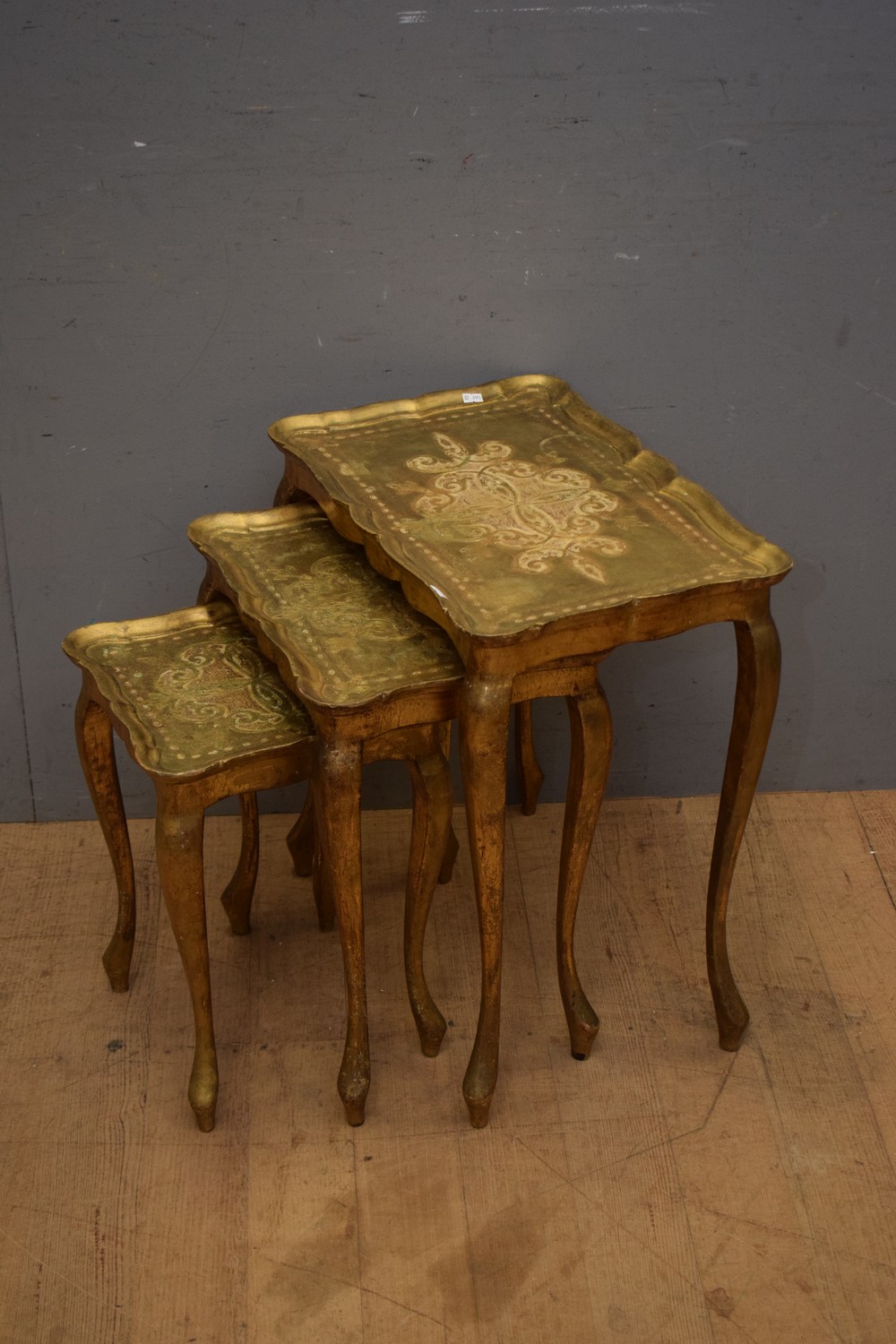 A NEST OF THREE ITALIAN GILTWOOD FLORENTINE TABLES (58H x 55W x 35D CM) (LEONARD JOEL DELIVERY SIZE: MEDIUM)