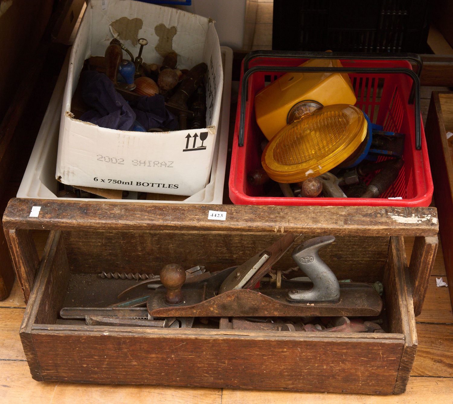 FOUR BOXES CONTAINING ASSORTED VINTAGE TOOLS, LEONARD JOEL LOCAL DELIVERY SIZE: MEDIUM