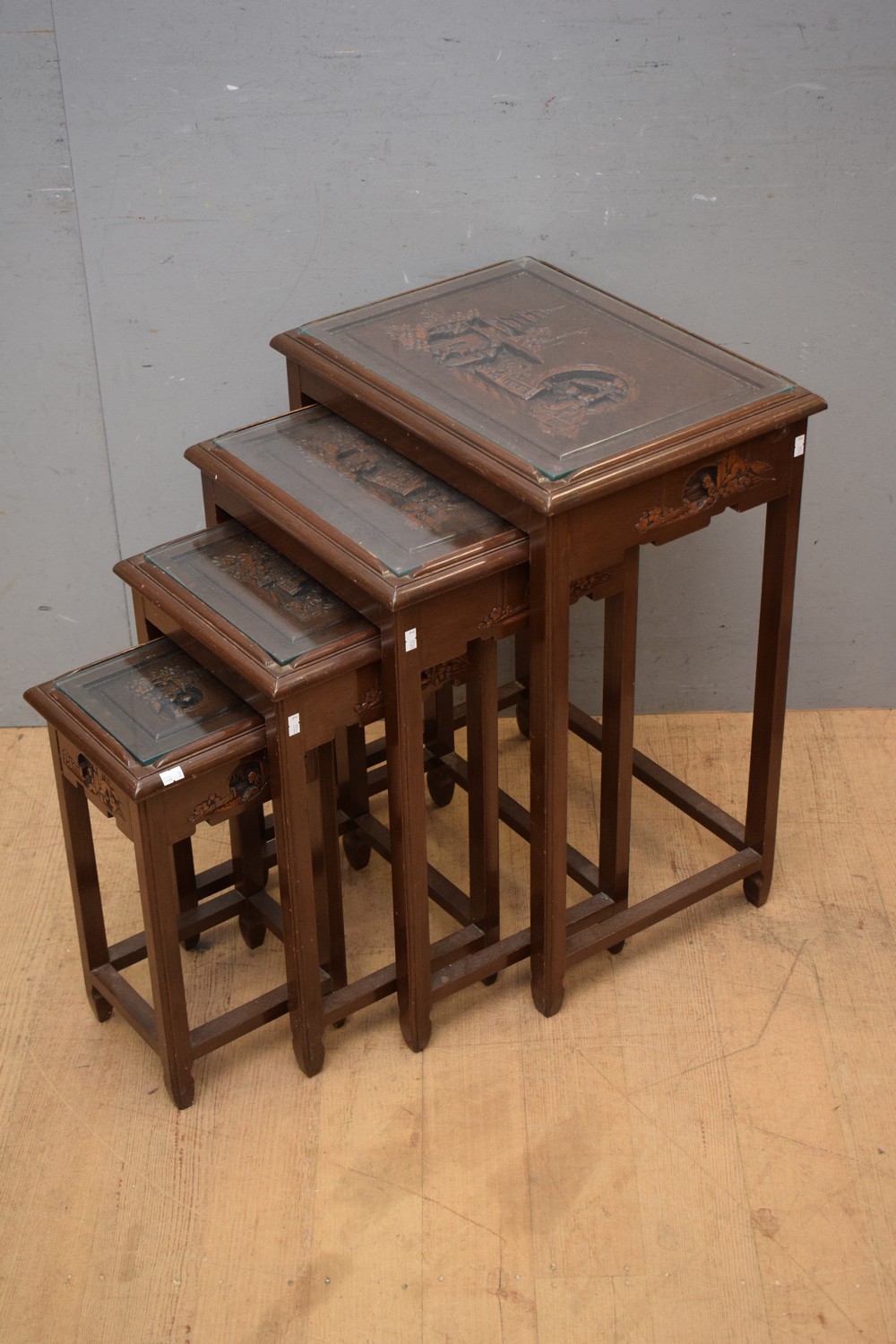 A NEST OF FOUR OCCASIONAL TABLES ( 66H X 48W X 36D CM) (LEONARD JOEL DELIVERY SIZE: LARGE)
