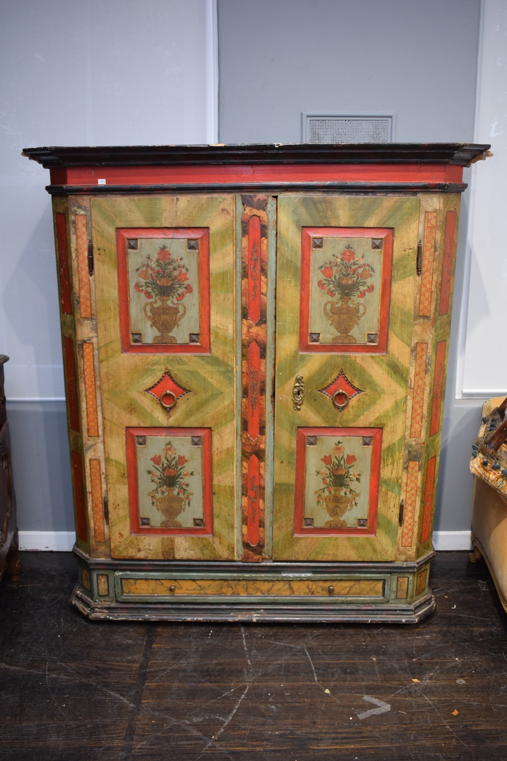 18TH CENTURY NORTHEN EUROPEAN PAINTED ARMOIRE, C.1780'S (A/F) (H188 X W168 X D62 CM) (PLEASE NOTE THIS HEAVY ITEM MUST BE REMOVED BY CARRIERS AT THE CUSTOMER'S EXPENSE. LEONARD JOEL STAFF CANNOT ASSIST CARRYING THIS ITEM) (X-LARGE ITEM)