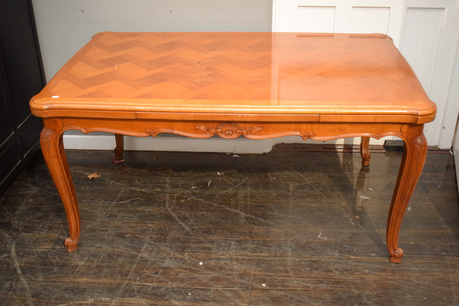 FRENCH LOUIS XV CHERRYWOOD DRAW LEAF EXTENSION TABLE, C.1930'S (A/F) (H76 X W159 X D99 CM) (PLEASE NOTE THIS HEAVY ITEM MUST BE REMOVED BY CARRIERS AT THE CUSTOMER'S EXPENSE. LEONARD JOEL STAFF CANNOT ASSIST CARRYING THIS ITEM) (X-LARGE ITEM)