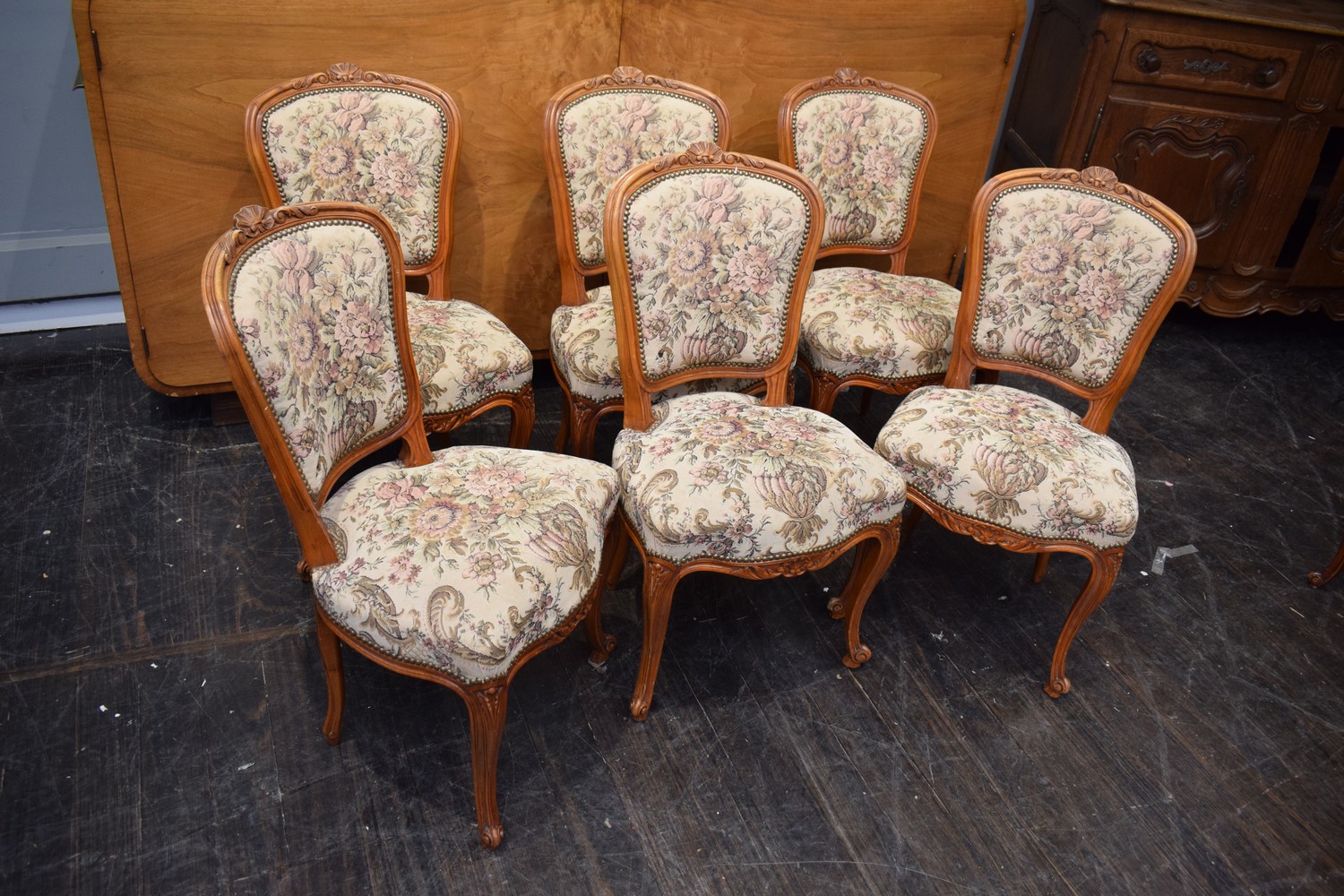 SET OF FRENCH LOUIS XV CHERRYWOOD DINING CHAIRS, C.1930'S (H89 X W52 X D58 CM) (LEONARD JOEL DELIVERY SIZE: LARGE)