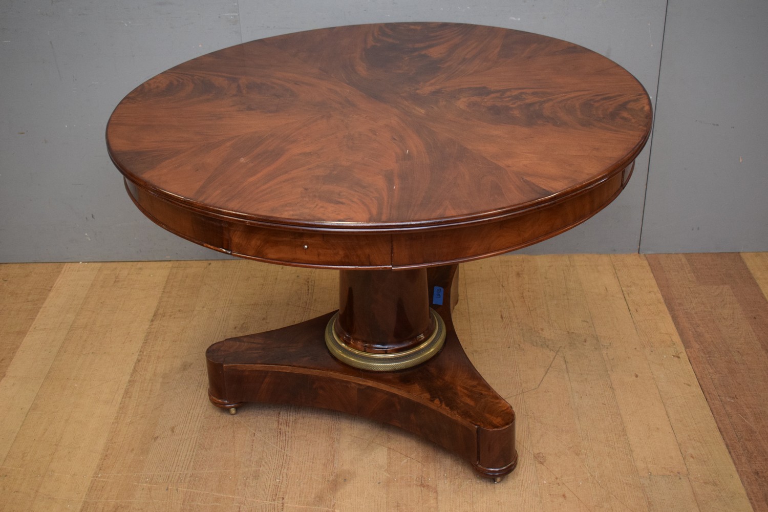 19TH CENTURY FRENCH EMPIRE FLAME MAHOGANY CENTER TABLE, C.1820'S (A/F) (74H x 110D CM) (PLEASE NOTE THIS HEAVY ITEM MUST BE REMOVED BY CARRIERS AT THE CUSTOMER'S EXPENSE. LEONARD JOEL STAFF CANNOT ASSIST CARRYING THIS ITEM) (X-LARGE ITEM)