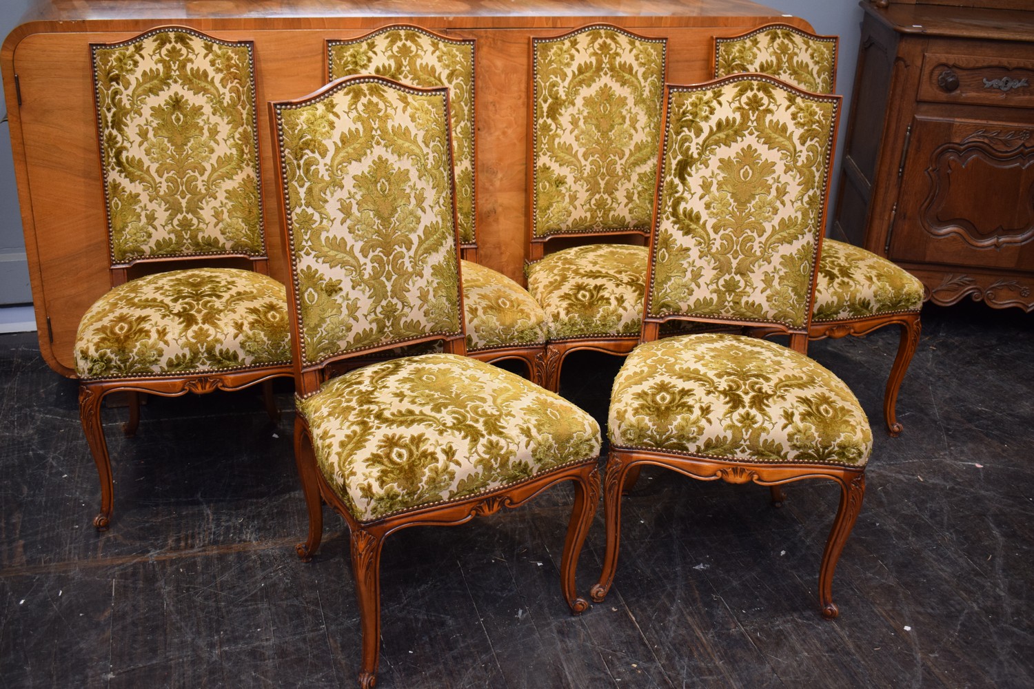 SET OF 6 FRENCH LOUIS XV CHERRYWOOD DINING CHAIRS, C.1930'S (A/F) (H107 X W55 X D59 CM) (LEONARD JOEL DELIVERY SIZE: LARGE)