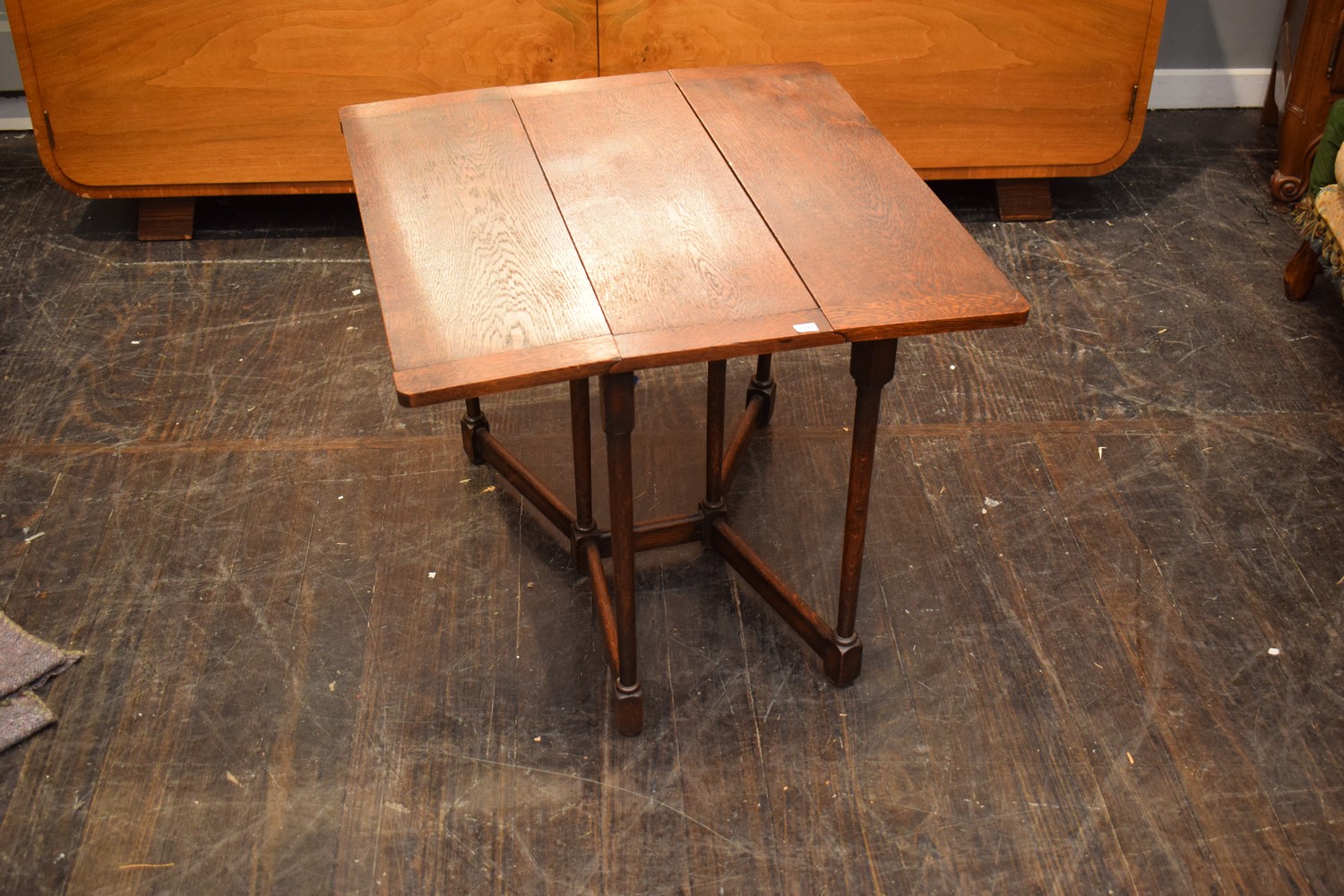 SOLID OAK GATE LEG TABLE, C.1930'S (H63 X W74 X D77 CM) (LEONARD JOEL DELIVERY SIZE: LARGE)